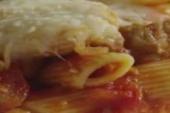 فر را قبلا تا دمای 350 درجه فارنهایت گرم کنید (175 درجه سانتیگراد). آب به همراه کمی نمک را در یک قابلمه بزرگ ریخته تا بجوشد. پاستا را به مدت 8 تا 10 دقیقه بپزید سپس از آب خارج کنید. گوشت را با چرخ گوشت مولینکس چرخ کنید.روغن را در یک ظرف عمیق حرارت دهید، گوشت و پیاز را درون آن ریخته تا بصورت یکدست قهوه ای شوند. روغن اضافه را بگیرید. سس گوجه، گوجه خورد شده و رب گوجه را اضافه کنید و بهم بزنید. به مدت ده دقیقه جوشیده و گه گاه بهم بزنید. آن را به همراه پاستا در یک ظرف 20 در 30 سانتیمتری ریخته و روی آنها پنیر موزارلا بریزید.