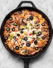 سپس در ظرف را برداشته، و مواد را همراه با پنیر پیتزا اضافه کنید و در ظرف را بزارید تا پنیر آب شود