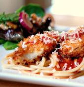 سس را داخل ظرف فر بریزید و سینه های مرغ سوخاری را روی آن قرار دهید سپس ظرف را داخل فر با دمای 200 درجه سانتیگراد به مدت 10 – 15 دقیقه قرار دهید تا چیکن پارمزان آماده شود.