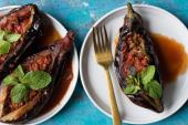- بادمجان های شکم پر را داخل فر که با دمای ۱۷۰درجه گرم شده به مدت ۳۰دقیقه بپزید و سپس سس را به مقدار دلخواه روی آنها بریزید و نوش جان کنید.
