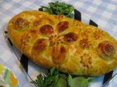 دوباره کمی پنیر، بعد قارچ ها رو بریزید و درآخر پنیر می ریزیم و قسمت دوم خمیر رو باز کرده و روی مواد پهن میکنیم لبه دو خمیر رو به سلیقه ی خودتون به هم وصل
