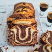 ابتدا زرده و سفیده های تخم مرغ را از هم جدا می کنیم، سپس زرده های تخم مرغ را به همراه ۱عدد از سفیده ها داخل یک کاسه بزرگ می ریزیم و با همزن مولینکس مخلوط می کنیم تا رنگشان روشن شود. در این مرحله روغن مایع را اضافه می کنیم و ۳۰ثانیه مخلوط می کنیم تا با تخم مرغ ها یکدست شود. در ادامه شیر را اضافه کرده و آنرا نیز به مدت ۳۰ثانیه دیگربا همزن مولینکس مخلوط می کنیم تا با دیگر مواد به خوبی ترکیب شود. حالا آرد را روی مواد درون کاسه الک می کنیم و به آرامی مخلوط می کنیم تا با دیگر مواد ترکیب شود. در ادامه بکینگ پودر را به همراه وانیل شکری اضافه می کنیم و باز با همزن مولینکس مخلوط می کنیم تا به خوبی با دیگر مواد یکدست شوند. حالا سفیده های تخم مرغ را به همراه شکر درون یک کاسه جداگانه می ریزیم و به خوبی با همزن مولینکس مخلوط می کنیم تا شبیه به برف شود و سفیده های تخم مرغ کاملا حجیم و پفکی شوند، سپس به کاسه مواد اضافه می کنیم. در این مرحله برای اینکه پف سفیده های تخم مرغ نخوابد، باید مواد را به صورت دورانی از پایین به بالا با لیسک فولد کنیم تا یکدست شوند. در ادامه مایه کیک را به دو قیمت مساوی تقسیم می کنیم و در دو کاسه می ریزیم. حالا برای درست کردن قسمت کاکائویی، پودر کاکائو را با آب گرم ترکیب می کنیم تا کاملا در آب حل شود، سپس به یکی از کاسه ها اضافه می کنیم و به آرامی با لیسک ترکیب می کنیم تا رنگ مایه کیک قهوه ای شود. فر را با دمای ۱۶۰درجه سانتیگراد روشن می کنیم تا به خوبی گرم شود، سپس درون قالب را با کاغذ روغنی یا روغن جداکننده کیک پوشش می دهیم. حالا ۴قاشق از مایه کیک ساده درون قالب می ریزیم و در مرکز آن ۴قاشق از مایه کیک کاکائویی می ریزیم. به همین صورت ادامه می دهیم تا مایه کیک تمام شود، سپس قالب را در طبقه وسط فر قرار می دهیم و اجازه می دهیم کیک به مدت ۴۵دقیقه تا ۱ساعت بپزد. توجه داشته باشید که در ۳۰دقیقه اول نباید در فر را باز کنیم. پس از گذشت ۴۵دقیقه کیک را با خلال دندان تست می کنیم و در صورتی که پخته بود از فر خارج می کنیم. حالا کیک را از قالب خارج کرده و روی صفحه توری قرار می دهیم تا کاملا خنک شود، سپس به صورت دلخواه برش می زنیم. نوش جان