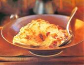لایه ها رو ادامه میدیم تا آخرین لایه که سس و ژامبون و جعفریه، روش پنیر ورقه ای رو میچینیم روی غذا رو فویل میکشیم